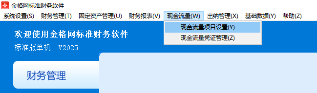软件主界面的菜单列,点击〖现金流量〗 —〖现金流量项目设置〗(参照图 1 ),自动完成流量项目的导入。